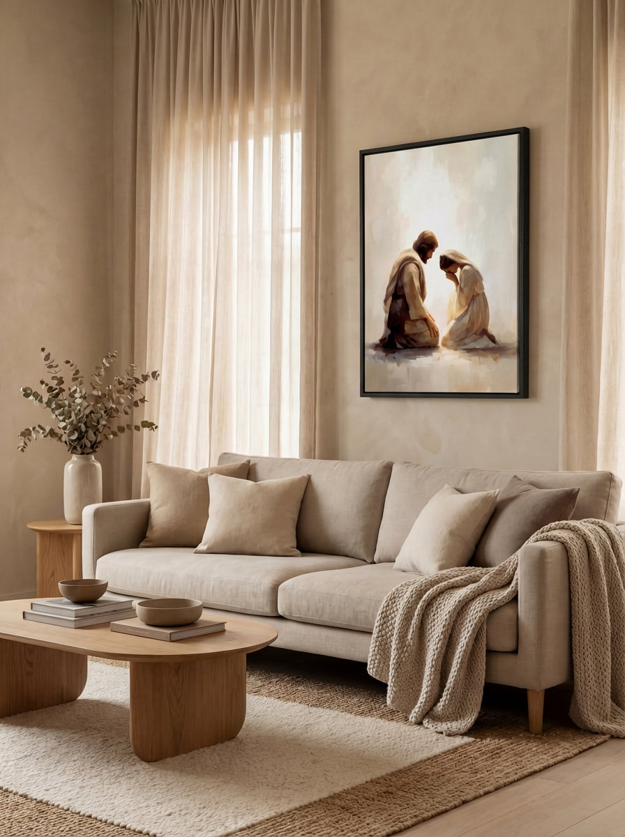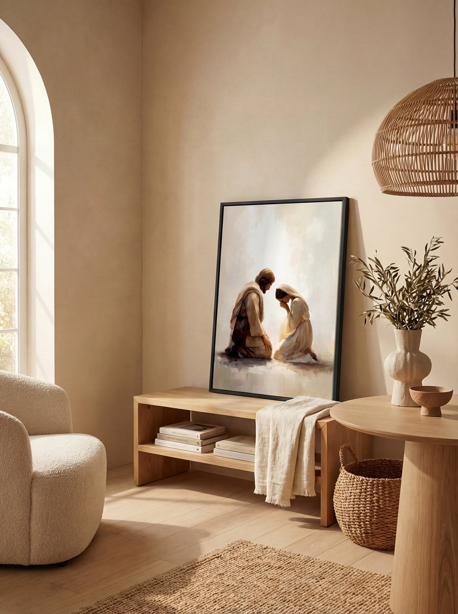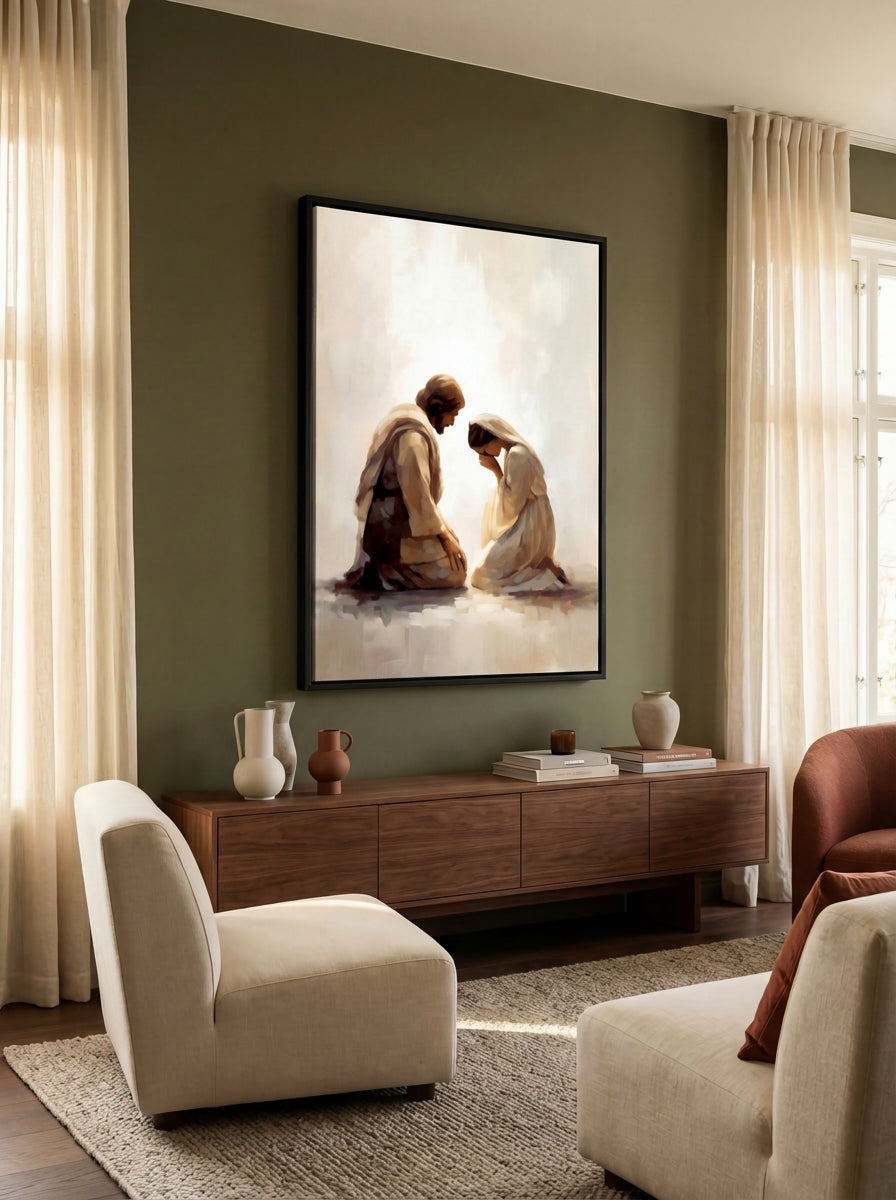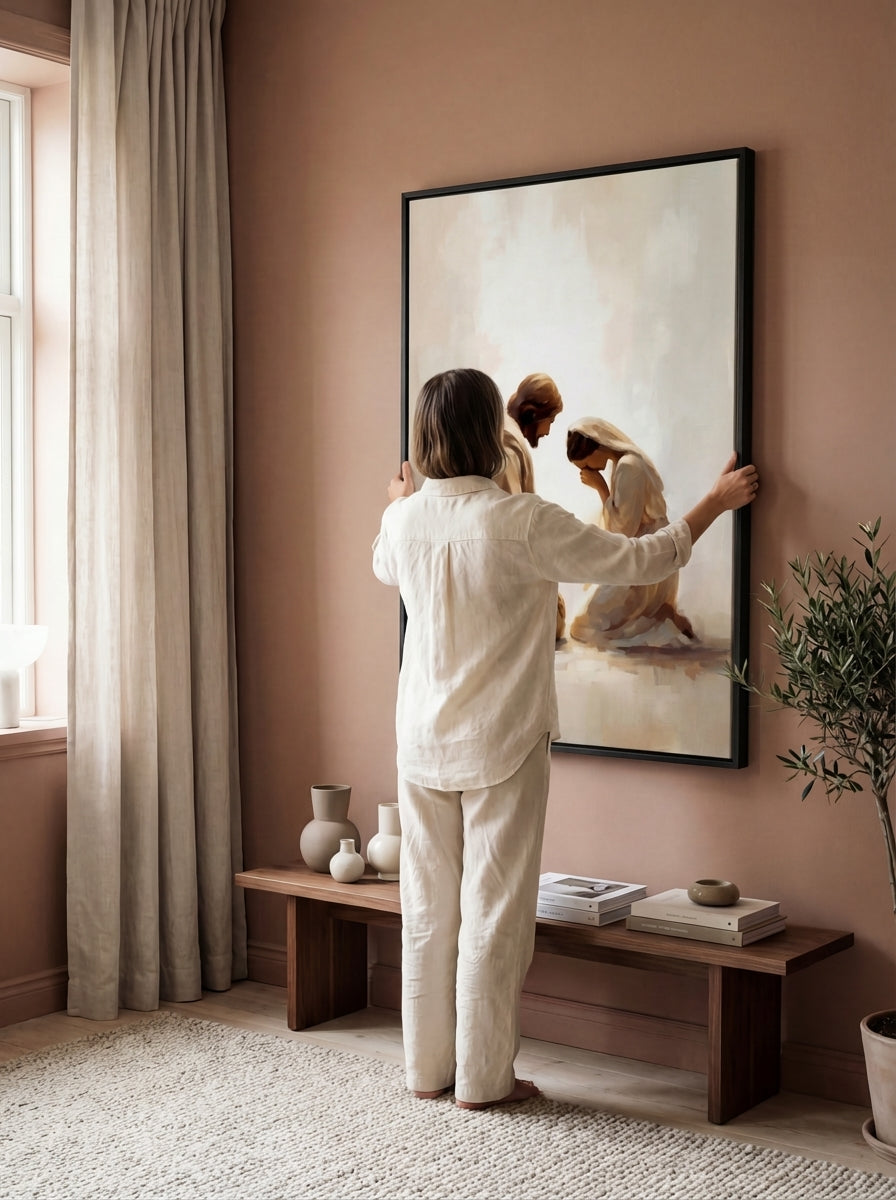 My faith has always been the center of my home, but for years I struggled to find artwork that honored that. What I found in stores felt shallow; what felt meaningful was out of reach. I believed there had to be a better way, beautiful and spirit-filled pieces that everyday families could actually afford. So I built it. Every painting is rooted in that same longing: to fill your walls, and your home, with something that truly reflects what you believe.