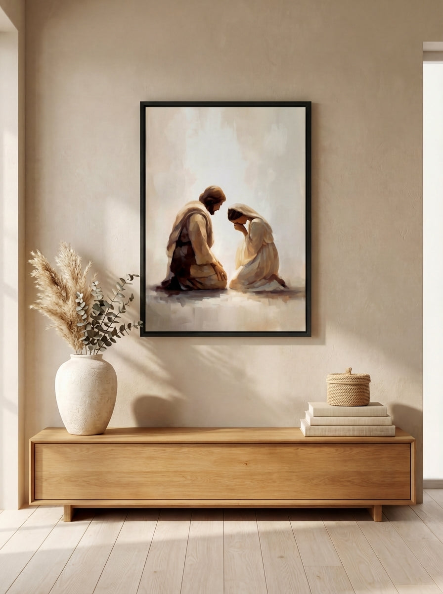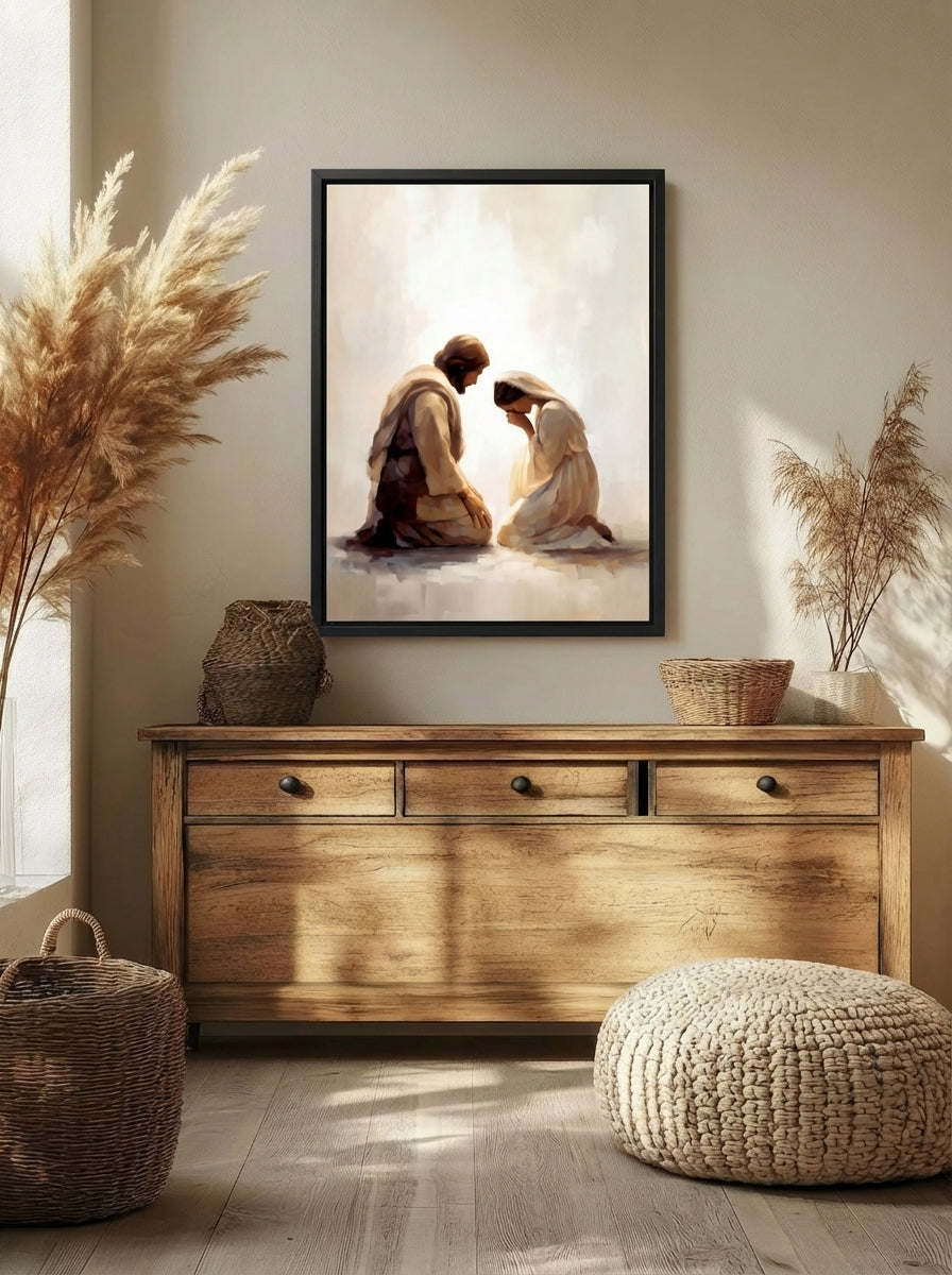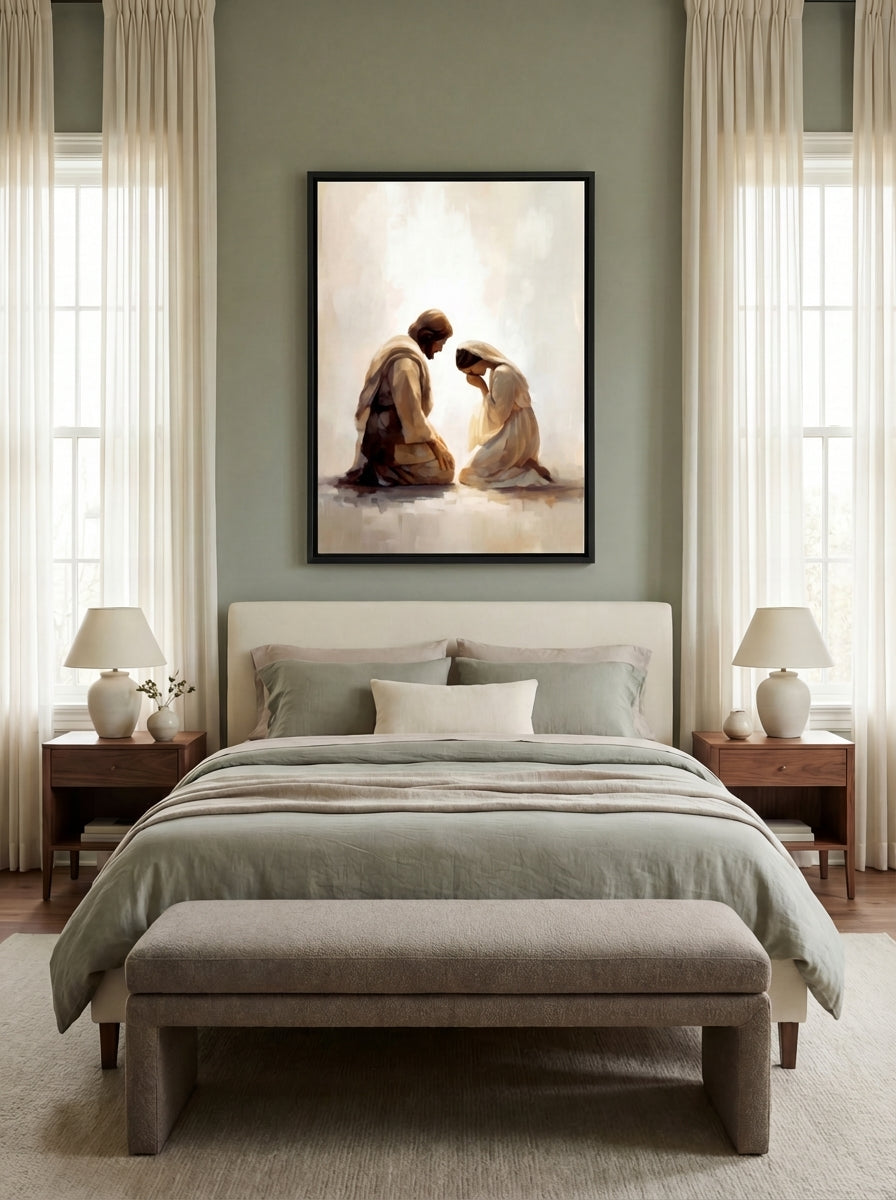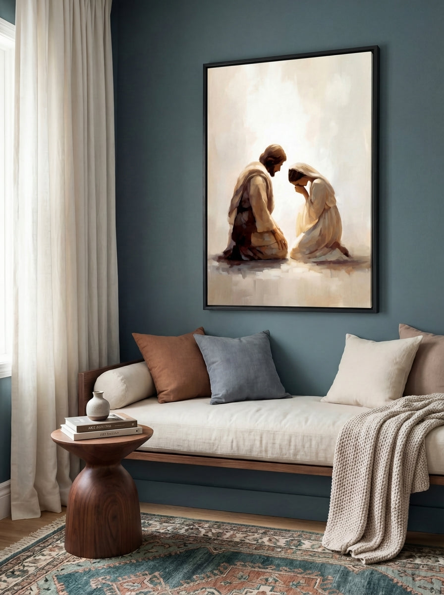 My faith has always been the center of my home, but for years I struggled to find artwork that honored that. What I found in stores felt shallow; what felt meaningful was out of reach. I believed there had to be a better way, beautiful and spirit-filled pieces that everyday families could actually afford. So I built it. Every painting is rooted in that same longing: to fill your walls, and your home, with something that truly reflects what you believe.